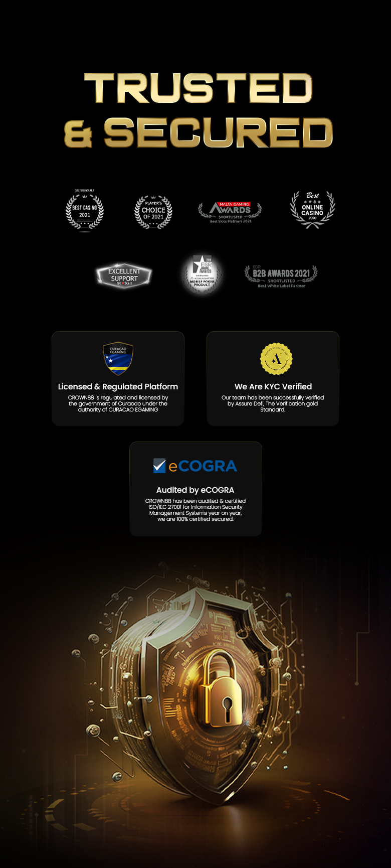 At Crown88, we prioritize your safety and security. We use state-of-the-art encryption technology to protect your personal information and financial transactions. Additionally, all our games are regularly audited for fairness, ensuring that you have a fair and transparent gaming experience.